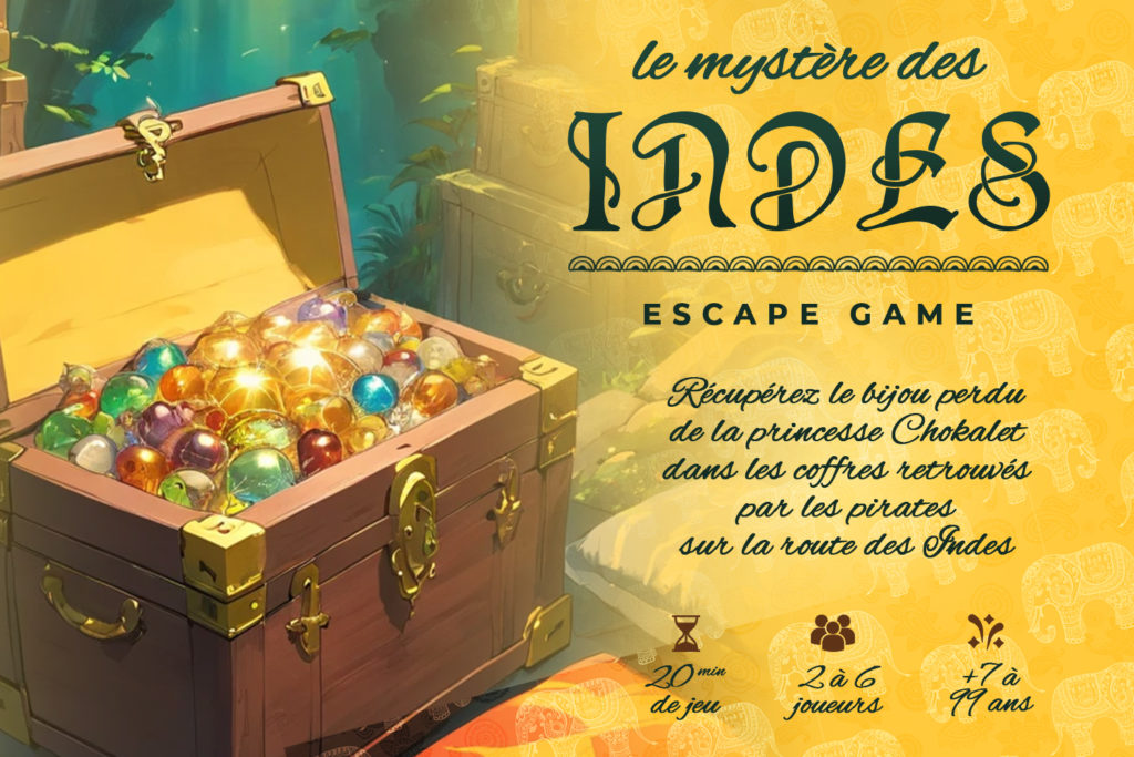Chers explorateurs, notre aventure commence en direction des Indes ! La princesse Chokalet, originaire de Bombay, était célèbre pour sa beauté mais surtout pour son bijoux inestimable. À la fin du XVe siècle, celui-ci fut dérobé par des pirates…
